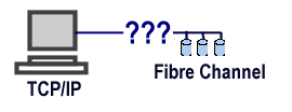 Disks speak Fibre Channel. (Nobody expects to plug all of their disk drives directly into the TCP/IP network.)